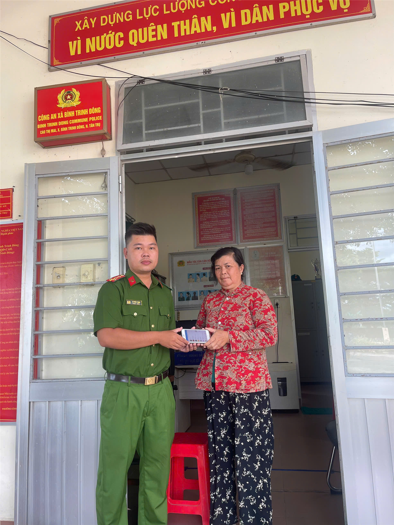 Ngay sau đó, Công an xã xác minh chiếc điện thoại trên của bà Nguyễn Thị Dung, sinh năm 1972, ngụ khu phố Tân Bình, thị trấn Trân Trụ là người đánh rơi điện thoại nói trên. Đến khoảng 08 giờ ngày 28/5/2025, Công an xã liên hệ và trao trả tài sản cho bà Dung.