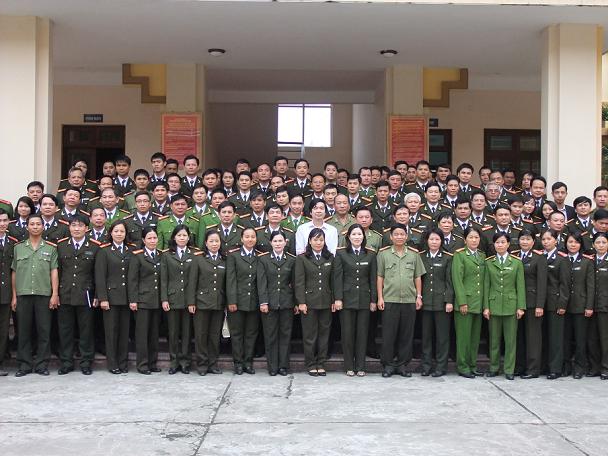 | Ban Tổ chức và các học viên tham dự lớp Bồi dưỡng nghiệp vụ công tác văn phòng cấp ủy trong CAND (Ảnh: Hồng Giang) |