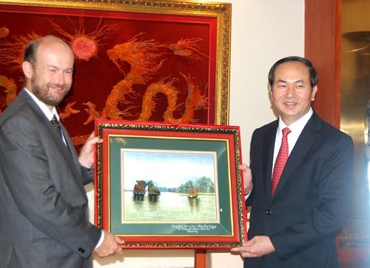 | Trung tướng Trần Đại Quang- Ủy viên Bộ chính trị - Bộ Trưởng Bộ Công an tặng quà lưu niệm Ngài Allaster Cox – Đại sứ đặc mệnh toàn quyền Australia tại Việt Nam |