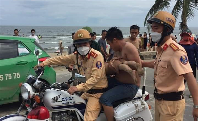 Trên mạng xã hội đang lan truyền một câu chuyện và những hình ảnh rất cảm động khi người dân và hai cán bộ, chiến sĩ Công an thành phố Sầm Sơn, tỉnh Thanh Hóa sử dụng phương tiện đặc chủng để đưa một cháu bé bị đuối nước khi tắm ở biển Sầm Sơn đi cấp cứu kịp thời.