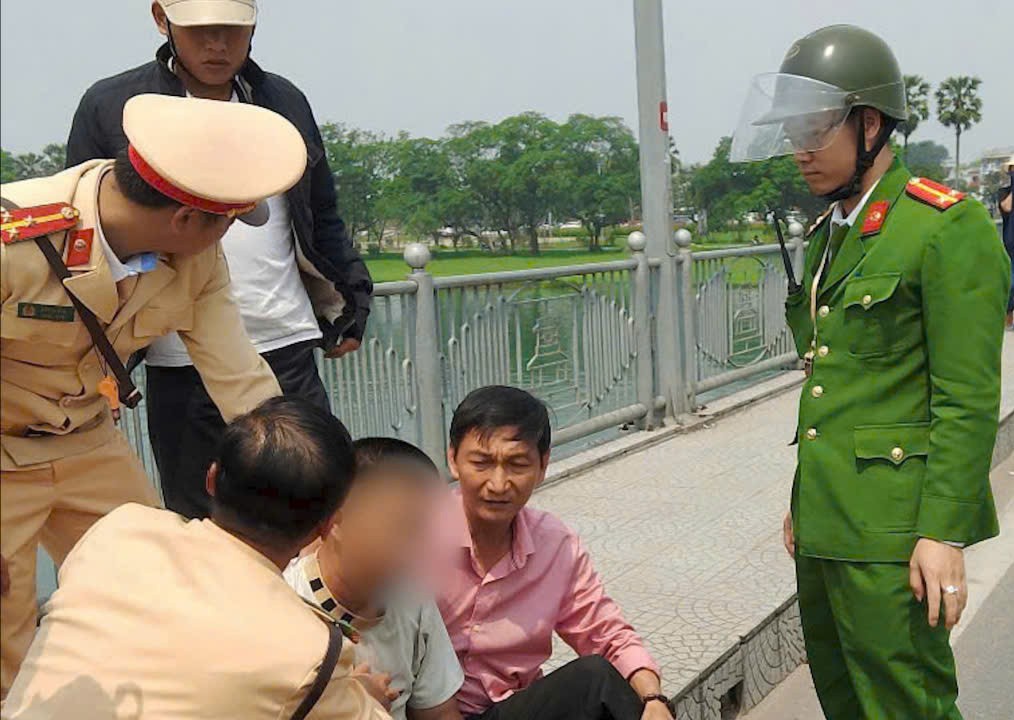 Ngay lập tức, Tổ công tác đã tiếp cận hiện trường, tiếp cận nam thanh niên để ngăn chặn hành vi. Lúc này, nam thanh niên đang đu người ra phía ngoài thành cầu, Tổ công tác dùng nhiều phương pháp động viên thuyết phục để người này lên thành cầu, bảo đảm an toàn. Tuy nhiên, nam thanh niên vẫn không có dấu hiệu từ bỏ hành vi nhảy cầu.