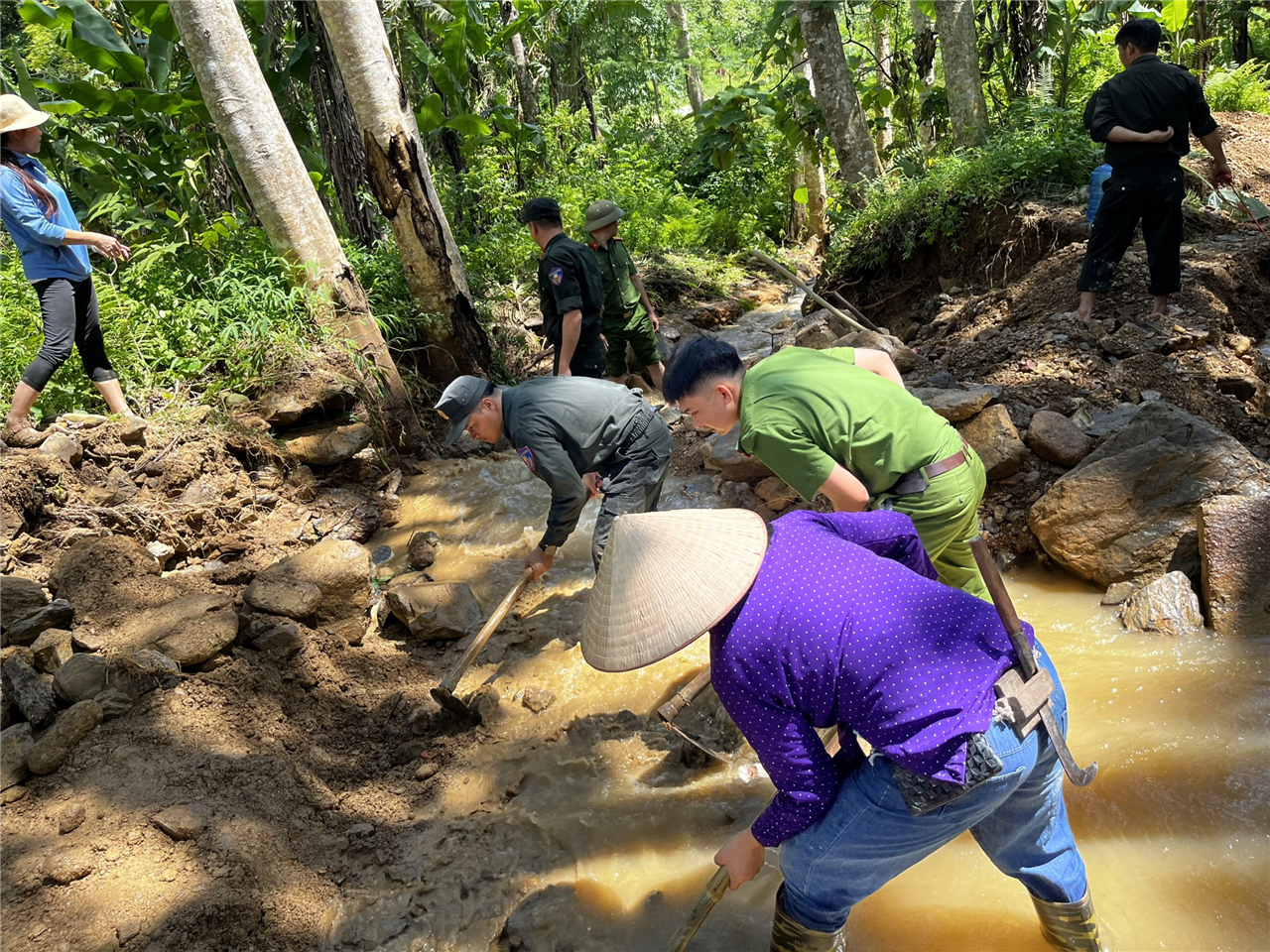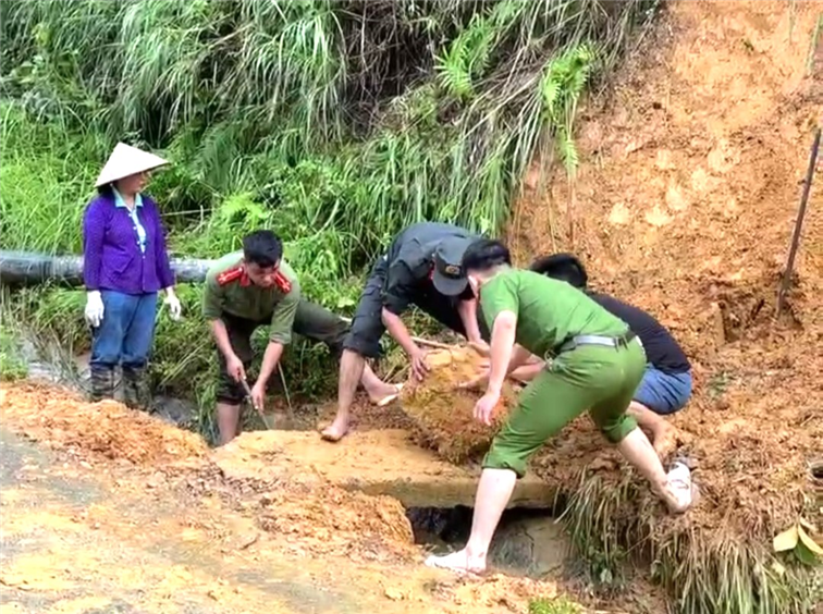 Nhằm phát huy tinh thần xung kích, vì nhân dân phục vụ, ngày 15/6/2024, Công an huyện Bảo Lâm phối hợp với Ủy ban nhân dân xã Vĩnh Quang, Tiểu đoàn Cảnh sát cơ động số 2 thuộc Trung đoàn Cảnh sát cơ động Đông Bắc triển khai lực lượng, phương tiện khắc phục hậu quả sau mưa bão, tổ chức dọn dẹp đất, đá bị sạt lở tại các kênh mương và tuyến đường giao thông trên địa bàn xã.