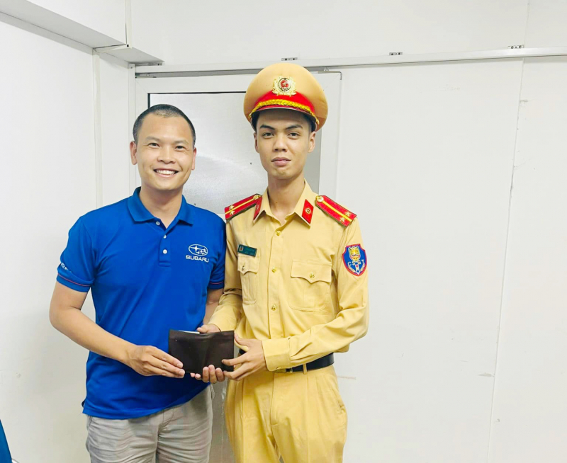 Trước đó, vào khoảng 20h30' tối 03/7/2022, tổ công tác thuộc Đội Cảnh sát giao thông số 3, Phòng Cảnh sát giao thông thành phố Hà Nội gồm: Thượng uý Trịnh Văn Hải, Thượng uý Nguyễn Văn Long và Trung uý Lê Mạnh Sơn làm nhiệm vụ tuần tra kiểm soát trên tuyến đường Thái Hà (quận Đống Đa, thành phố Hà Nội) thì bất ngờ phát hiện một chiếc ví da màu nâu rơi trên đường.