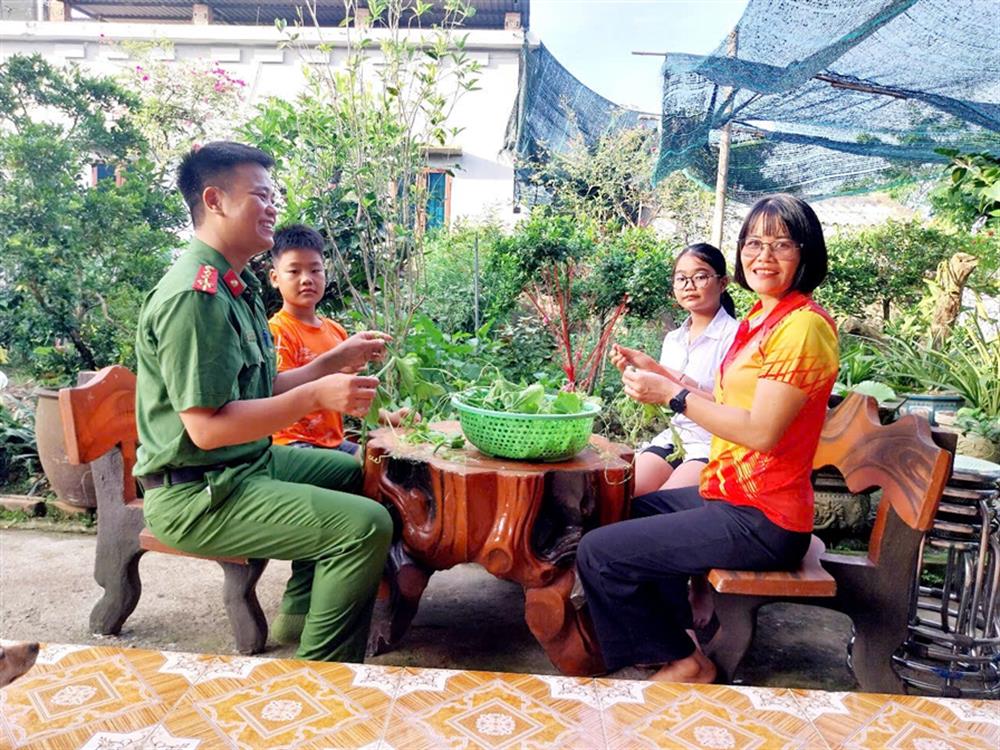 Bên chén nước chè, câu chuyện lại càng thêm rôm rả. Chị chia sẻ “Công việc của một người cán bộ Công an công tác tại cơ sở hầu như không có lúc nào ngơi nghỉ. Càng những ngày lễ, Tết, anh càng bận. Lo cho chồng, thương chồng bao nhiêu lại càng ý thức cuộc sống bình yên hôm nay một phần nhờ vào những vất vả hy sinh của những chiến sĩ Công an, công việc vinh quang mà chồng mình đang theo đuổi. Bởi vậy chị không những lo toan chu toàn việc nhà, việc dạy học mà còn luôn động viên anh yên tâm công tác”.