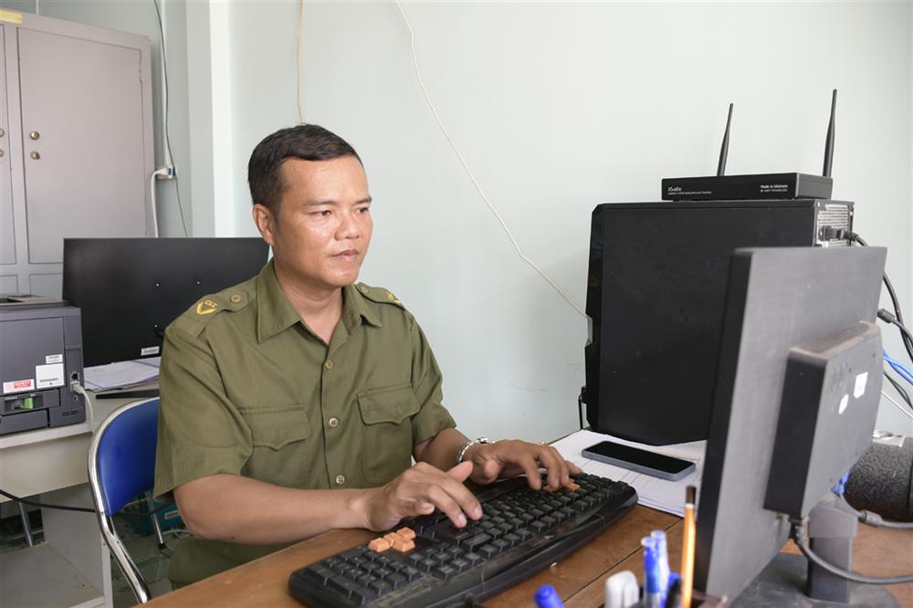 | Ông Võ Anh Hoàng làm việc tại trụ sở Công an xã. |