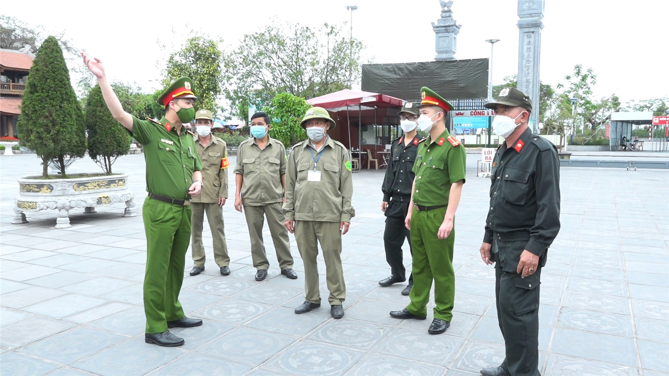 | Thiếu tá Nguyễn Đông Sơn cùng các lực lượng thực hiện công tác tuần tra trên địa bàn. |