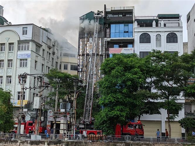 Tổ trinh sát đám cháy gồm 03 đồng chí đã triển khai trinh sát, tổ chức chữa cháy, hướng dẫn 08 người bị nạn thoát ra ngoài an toàn. Quá trình trinh sát, chỉ huy chữa cháy đồng thời triển khai mũi tấn công theo cầu thang bộ bên trong nhà để chữa cháy và phun nước làm mát cho cán bộ, chiến sỹ. Tổ trinh sát tiếp tục quay lên các tầng trên bên trong nhà với hy vọng tìm kiếm thêm những nạn nhân khác còn bị mắc kẹt. Khi lên tới tầng 04 thì các vật liệu làm trần giả, vật liệu trang trí bên trong nhà sập xuống cầu thang bộ và làm 03 cán bộ, chiến sỹ hy sinh: