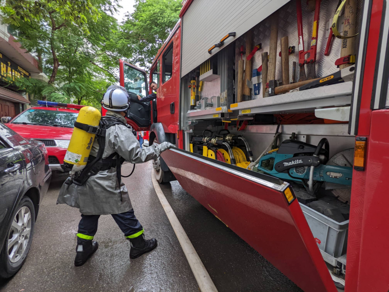 | Cán bộ, chiến sỹ thuộc lực lượng Cảnh sát PCCC và CNCH đã áp dụng các biện pháp đảm bảo an toàn trong quá trình thực hiện nhiệm vụ theo đúng quy định. |