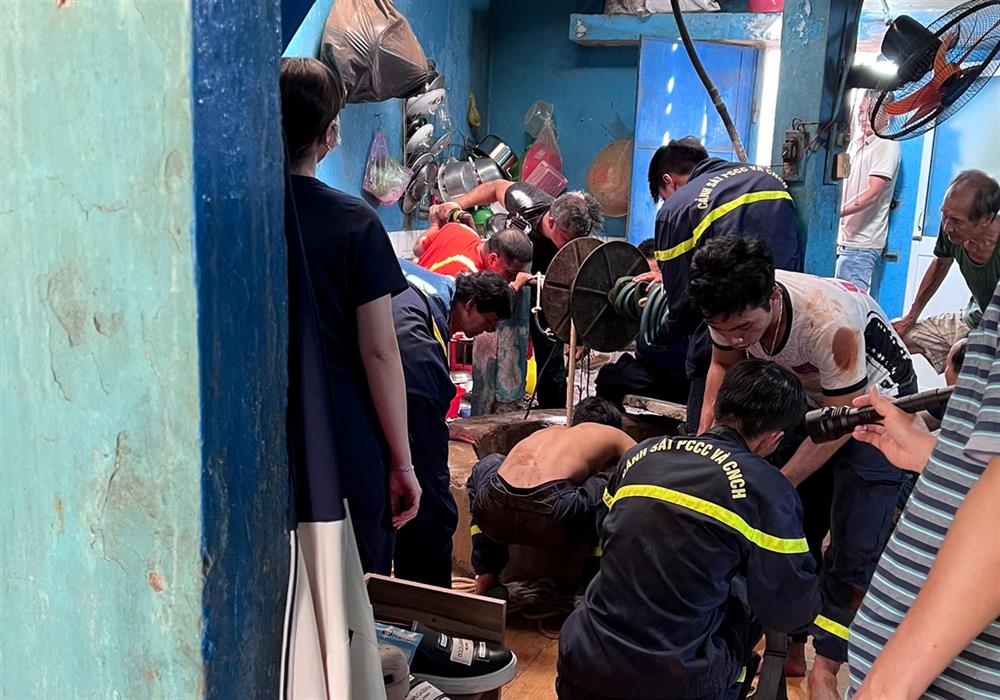 Lực lượng nhanh chóng triển khai đội hình cứu nạn cứu hộ dưới sâu sử dụng bộ dụng cụ cứu người trong không gian hẹp, kết hợp đưa không khí qua các bình dưỡng khí thả xuống giếng để duy trì hô hấp và trấn an tinh thần các nạn nhân. Đồng thời, CBCS dày dạn kinh nghiệm sử dụng dụng cụ chuyên dụng xuống giếng cứu người. Đến 15 giờ 25 phút cùng ngày cả 2 nạn nhân được đưa lên an toàn.