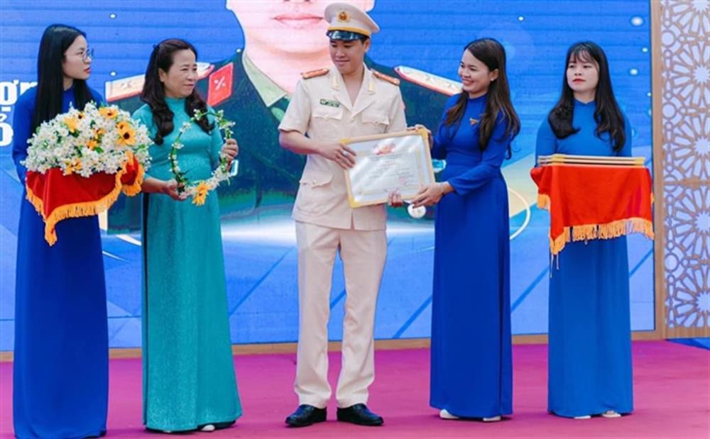 | Đại úy Tưởng Thị Như Quỳnh nhận giải thưởng Gương mặt tiêu biểu năm 2023. |