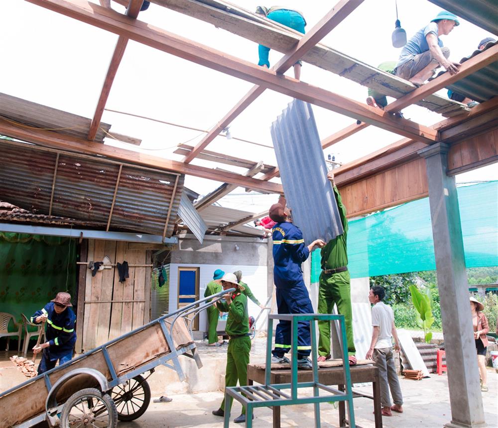 Hà Tĩnh: Cán bộ, chiến sỹ tích cực giúp dân khắc phục thiệt hại do lốc xoáy gây ra
