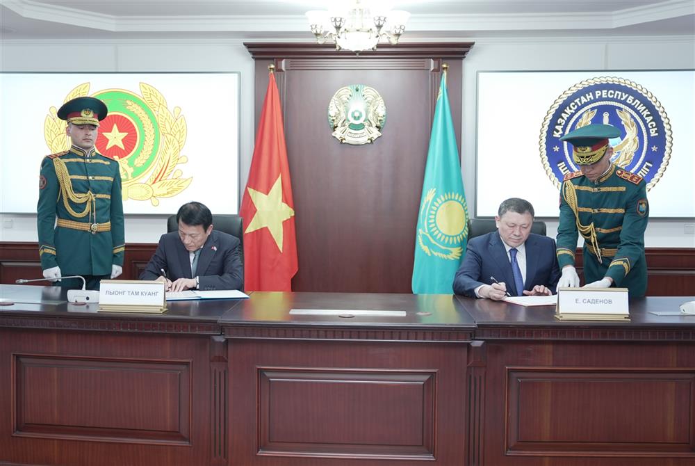 | Bộ trưởng Lương Tam Quang và Bộ trưởng Bộ Nội vụ Kazakhstan Yerzhan Sadenov. |