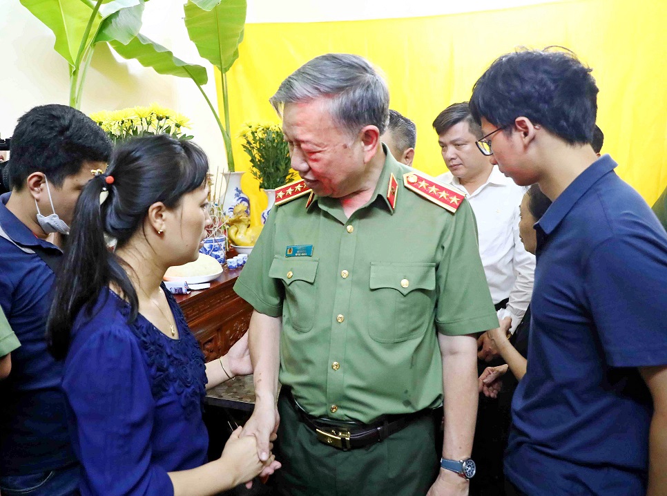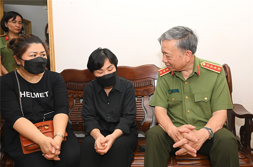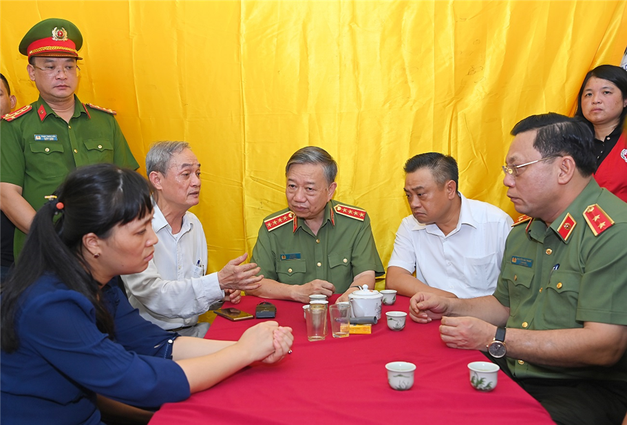 Chiều 02/8/2022, tại Hà Nội, Đoàn công tác Bộ Công an do Đại tướng Tô Lâm, Ủy viên Bộ Chính trị, Bộ trưởng Bộ Công an làm Trưởng đoàn đã đến thăm hỏi, động viên, chia sẻ nỗi đau mất mát đối với gia đình 03 đồng chí Cảnh sát phòng cháy, chữa cháy và cứu nạn, cứu hộ Công an quận Cầu Giấy, thành phố Hà Nội hy sinh trong khi làm nhiệm vụ chữa cháy và cứu nạn, cứu hộ tại số 231 Quan Hoa, quận Cầu Giấy.