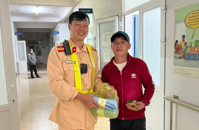| Niểm vui của người chiến sỹ CSGT sau khi cứu giúp sản phụ đến bệnh viện an toàn. |