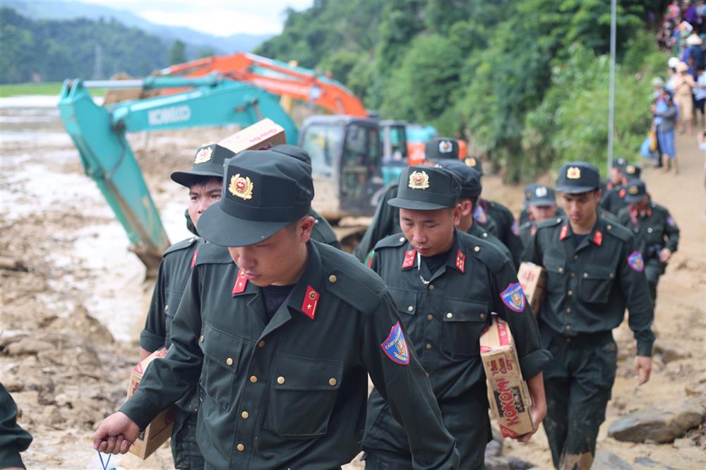Tiểu đoàn Cảnh sát cơ động (CSCĐ) số 1 thuộc Trung đoàn CSCĐ Tây Bắc - Bộ Tư lệnh CSCĐ, đóng quân tại Điện Biên với 30 cán bộ, chiến sỹ của Tiểu đoàn, được trang bị đầy đủ phương tiện cứu hộ, cứu nạn đã tổ chức ra quân làm nhiệm vụ hành quân xuống địa bàn, tìm kiếm người mất tích, đồ đạc thất lạc do lũ quét, cây gẫy đổ,