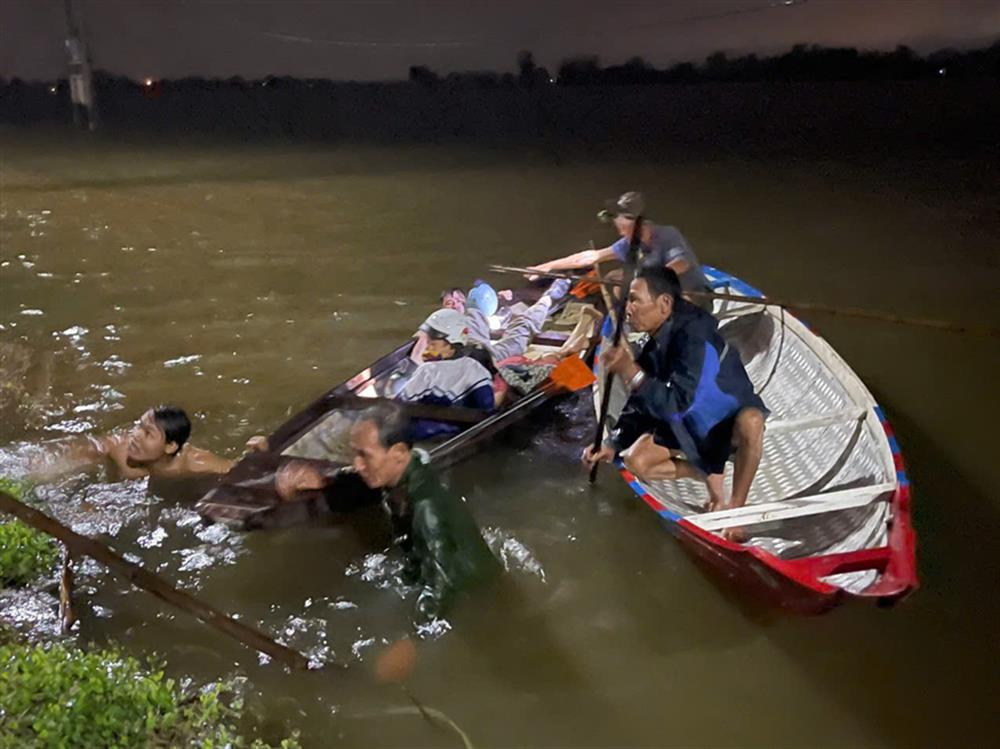 Thiếu tá Đặng Công Thịnh, Công an huyện Quảng Điền cho biết, lúc này, mưa to, nước chảy xiết, đồng chí cùng gần 20 cán bộ Công an huyện và người dân dùng ghe nhanh chóng tìm kiếm và đưa 03 nạn nhân vào bờ an toàn.