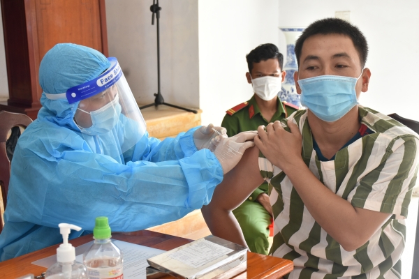 | Cán bộ Bệnh xá Công an tỉnh Bạc Liêu tiêm vắc-xin phòng Covid-19 cho can, phạm nhân. |