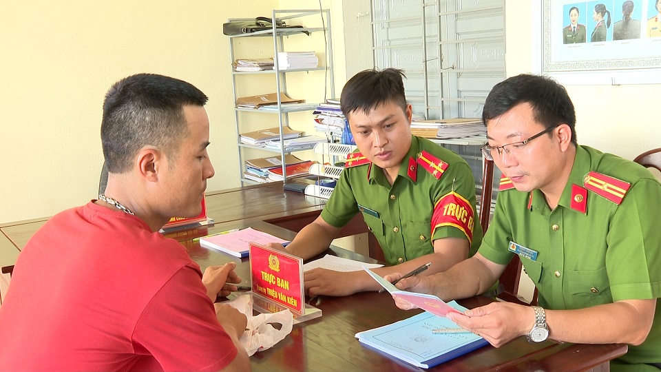 | Thiếu tá Trịnh Văn Dư hướng dẫn các thủ tục hành chính cho nhân dân. |
