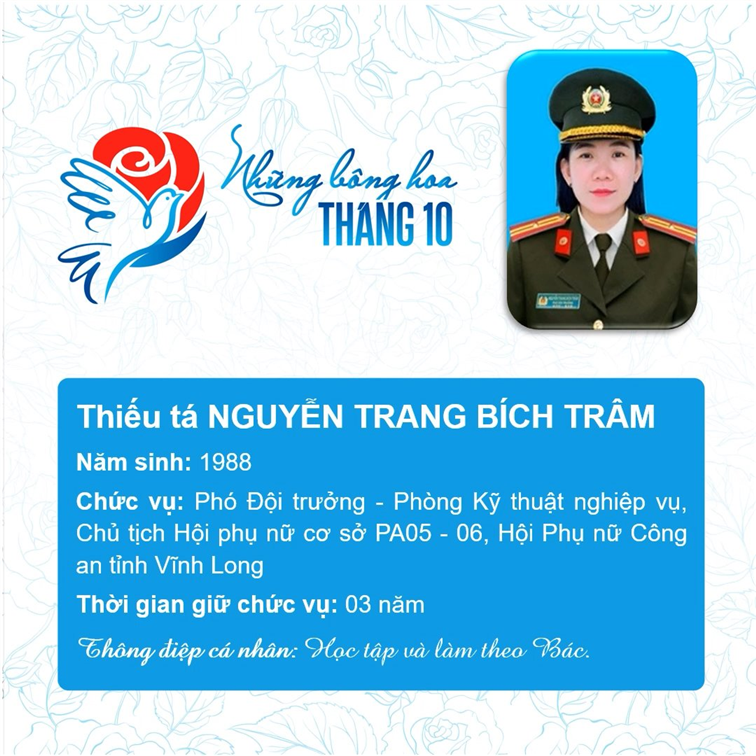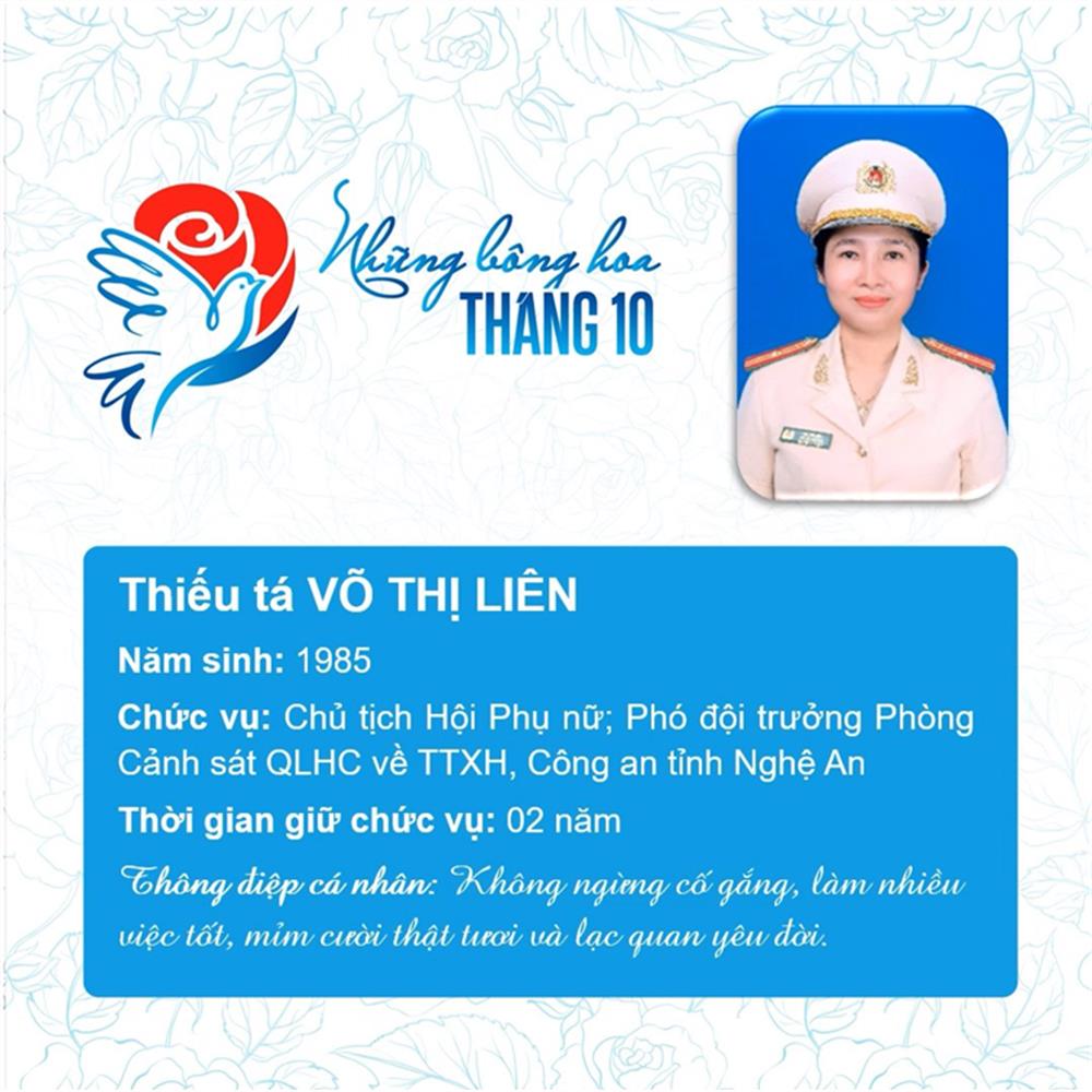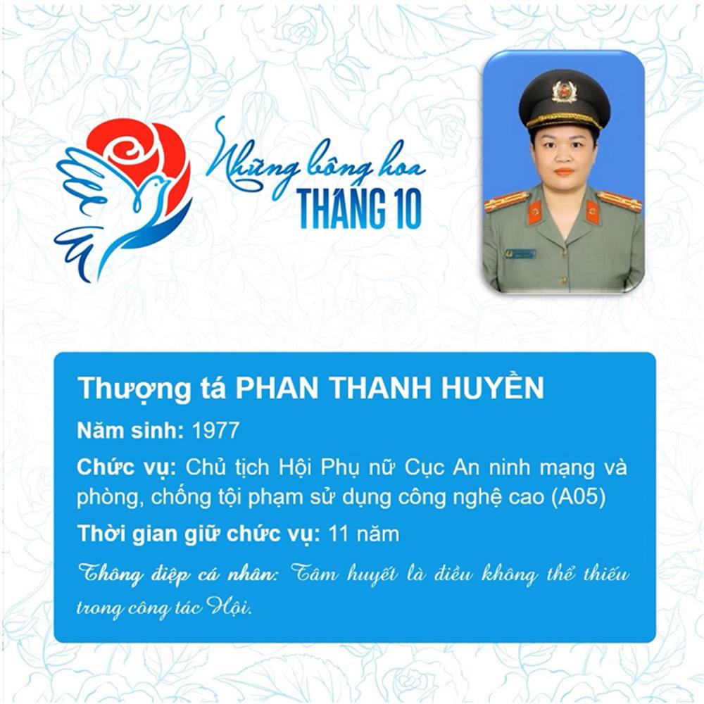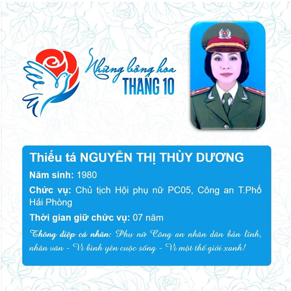 Tham dự Chương trình biểu dương Chủ tịch Hội Phụ nữ cơ sở giỏi toàn quốc năm 2023 do Trung ương Hội Liên hiệp Phụ nữ Việt Nam phối hợp với Bộ Công an tổ chức, trong số 293 Chủ tịch Hội cơ sở giỏi, Bộ Công an vinh dự có 11 đại biểu là Chủ tịch Hội Phụ nữ cơ sở giỏi được vinh danh, gồm: