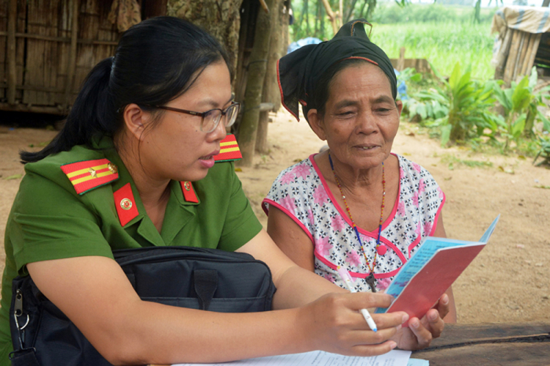 | Thiếu tá Lục Thị Như Trang thường xuyên sâu sát, bám nắm tình hình địa bàn. |