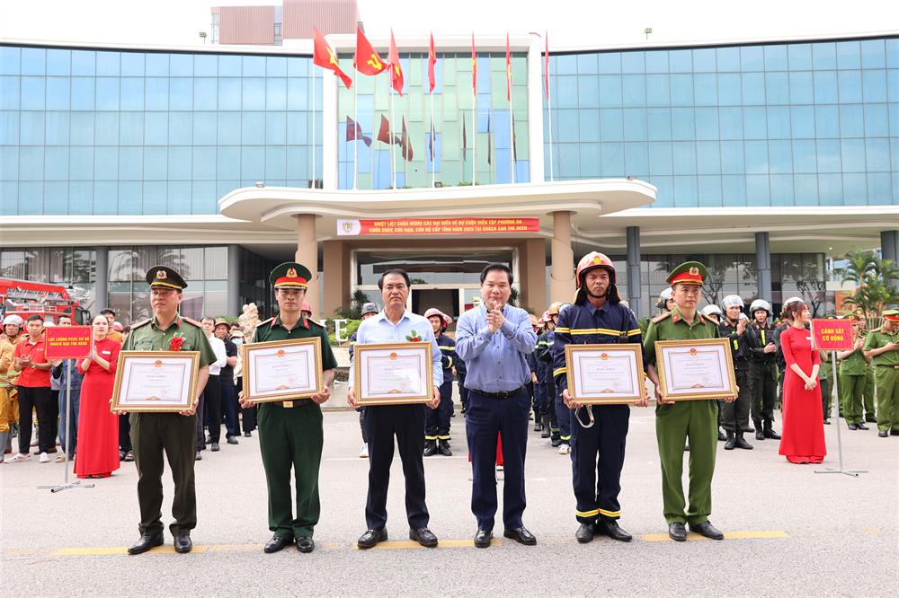 Nhân dịp này, 13 tập thể, 18 cá nhân được Chủ tịch UBND tỉnh tặng Bằng khen và Giám đốc Công an tỉnh tặng Giấy khen vì đã có thành tích xuất sắc trong công tác tổ chức Diễn tập phương án PCCC và CNCH cấp tỉnh năm 2025.