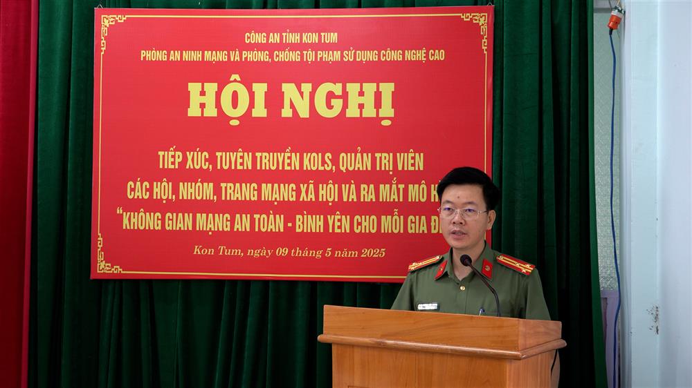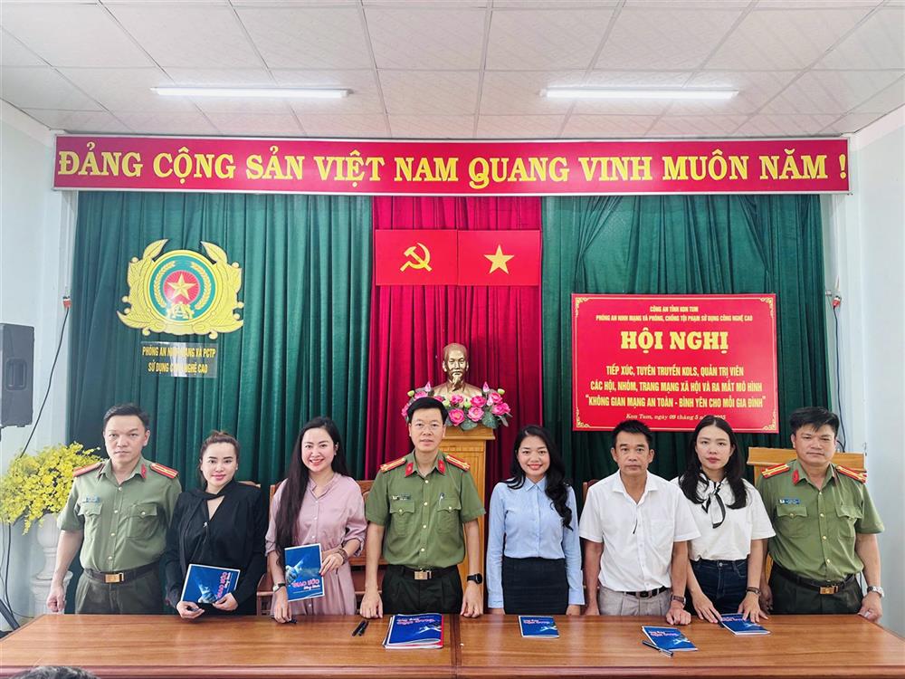 Đơn vị đã trình bày báo cáo nhanh về tình hình an ninh mạng trên địa bàn tỉnh, đồng thời cảnh báo các thủ đoạn lừa đảo tinh vi đang diễn ra phổ biến như: giả danh cơ quan Công an, tuyển cộng tác viên, việc nhẹ lương cao, lừa đảo đầu tư… Đặc biệt, tại hội nghị, mô hình “Không gian mạng an toàn - Bình yên cho mỗi gia đình” đã chính thức được công bố và ra mắt. Đây là mô hình thí điểm do Phòng An ninh mạng và PCTP sử dụng công nghệ cao chủ trì, phối hợp với các KOL, quản trị viên hội nhóm và các cơ quan chức năng triển khai, với mục tiêu xây dựng cộng đồng mạng tỉnh Kon Tum an toàn, tích cực và văn minh. Mô hình bao gồm các nội dung như thiết lập kênh tương tác hỗ trợ KOL – quản trị viên, hệ thống cảnh báo nhanh các thủ đoạn lừa đảo, phát hành bộ quy tắc ứng xử, cùng các chiến dịch tuyên truyền đồng hành.