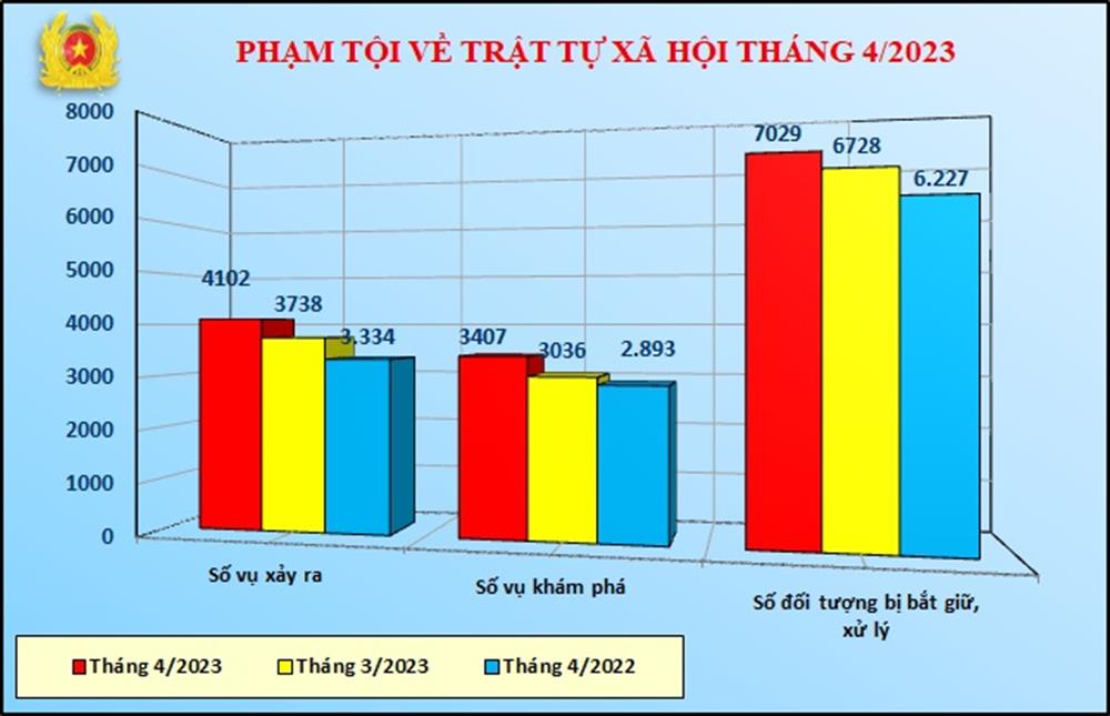 | Biểu đồ phạm tội về trật tự xã hội tháng 04/2023. |
