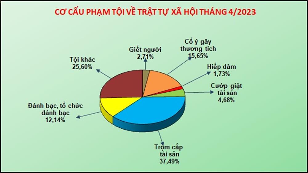 | Biểu đồ cơ cấu tội phạm về trật tự xã hội tháng 04/2023. |
