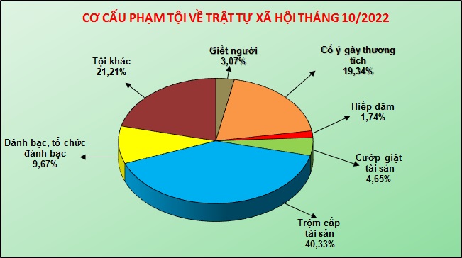 | Biểu đồ cơ cấu tội phạm về trật tự xã hội tháng 10/2022. |