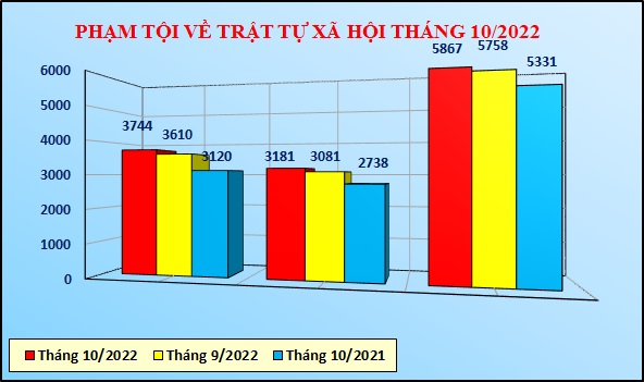 Biểu đồ phạm tội về trật tự xã hội tháng 10/2022. |