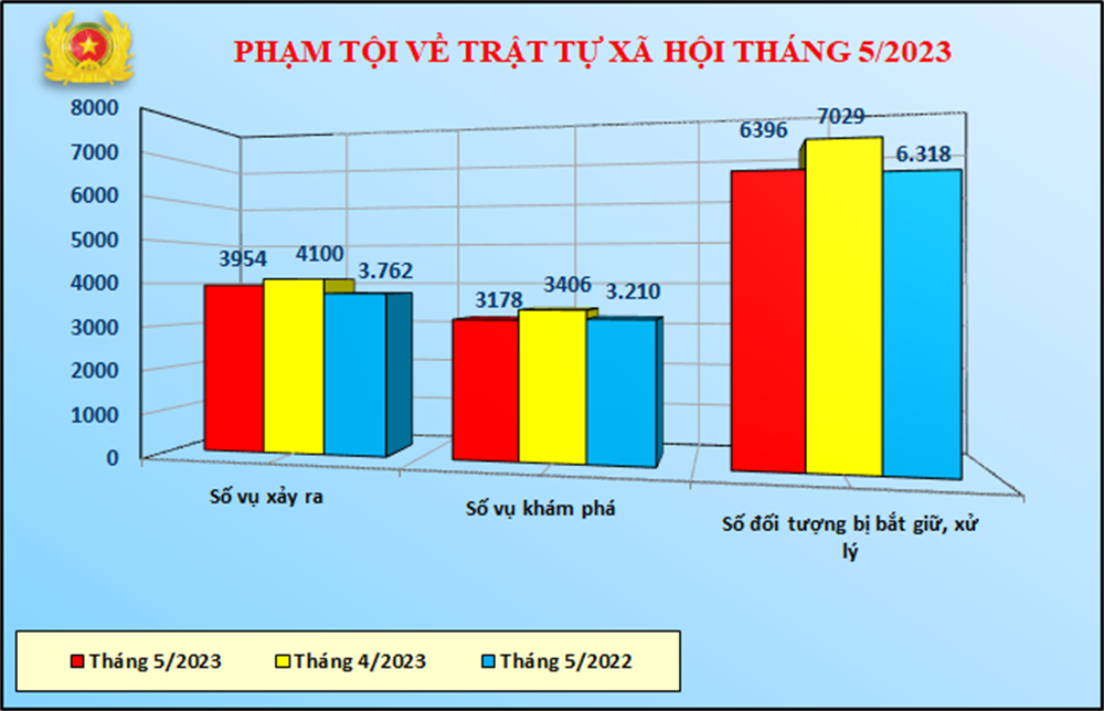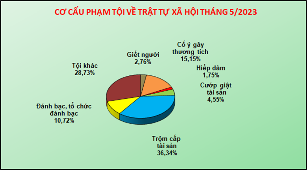 | Biểu đồ phạm tội về trật tự xã hội tháng 5/2023. |
