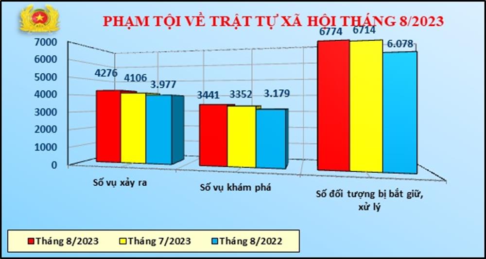 | Biểu đồ phạm tội về trật tự xã hội tháng 8/2023. |