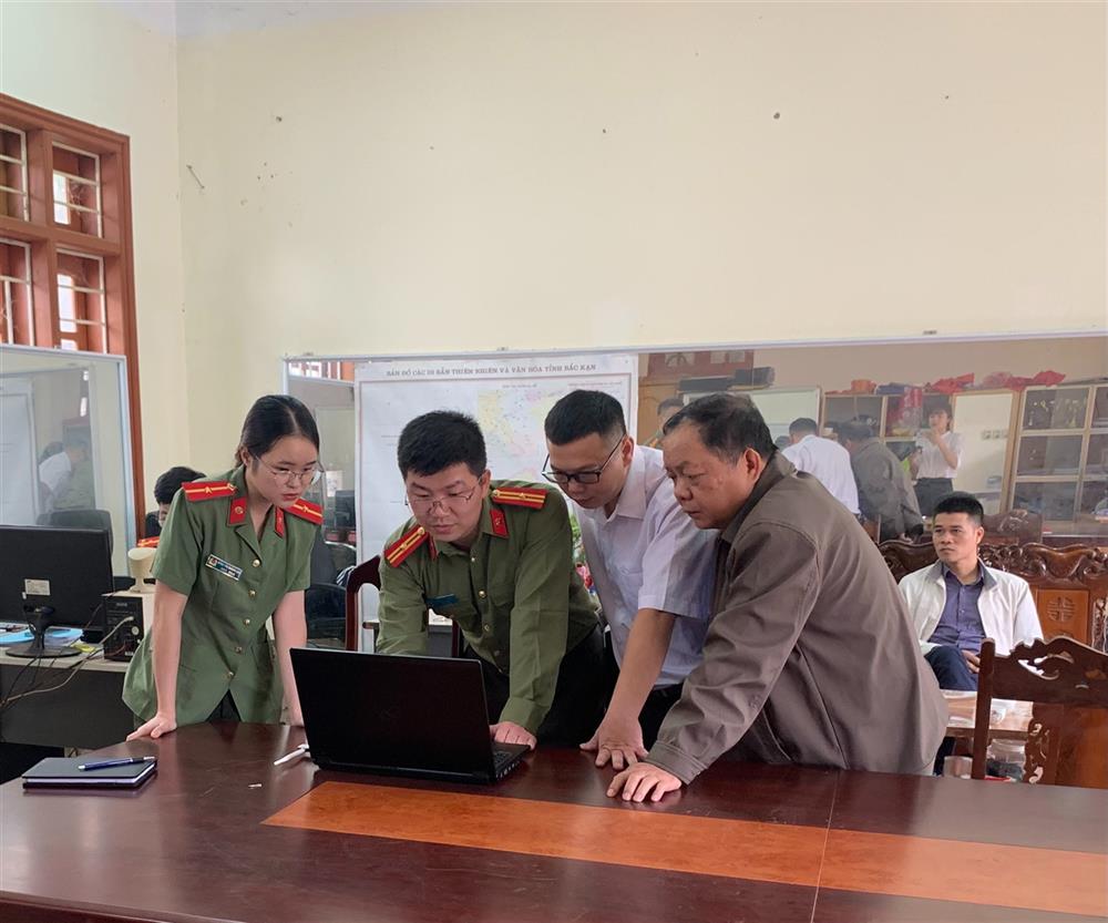 | Thiếu tá Tống Hữu Thế hướng dẫn cán bộ Trung tâm VH, TT và truyền thông huyện Ngân Sơn khắc phục lỗ hổng bảo mật Cổng thông tin diện tử. |