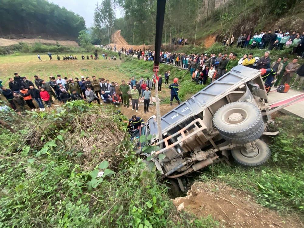 Hiện trường xảy ra vụ tai nạn tại xóm Lam Sơn, xã Cúc Đường, huyện Võ Nhai; chiếc xe ô tô có trọng tải gần 08 tấn, chở 01 tấn xi măng và 03 khối cát đang di chuyển trên đường, vào cua bị đổ lật nghiêng về bên phải xuống bờ ruộng sát đường. Lái xe đã tự thoát được ra ngoài; còn phụ xe bị mắc kẹt trong cabin, phần đầu xe và cabin bị móp méo, cấu kiện xe bị biến dạng tì đè, kẹp vào tay, chân nạn nhân, gây chảy máu, choáng và khó thở; quần chúng nhân dân đã tìm nhiều cách để cứu nạn nhân ra nhưng không được.