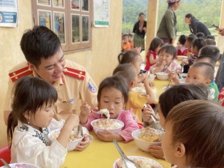 | Trung úy Dương Hải Anh với dự án "Nuôi em Mộc Châu". |