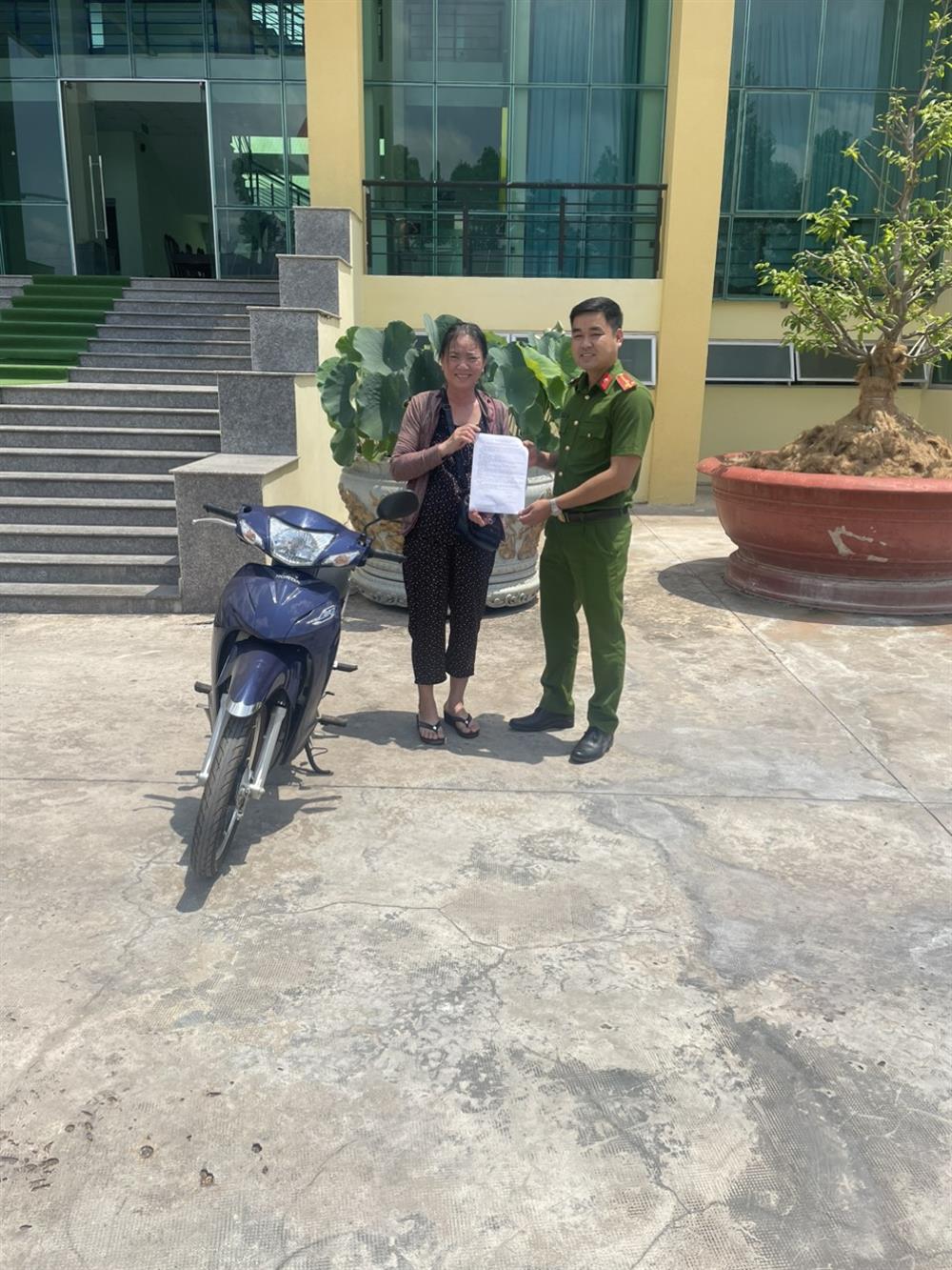 | Công an huyện Đức Huệ trao trả tài sản cho chị Tâm. |