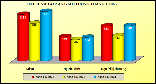 | Biểu đồ số liệu về tình hình tai nạn giao thông tháng 11/2022. |