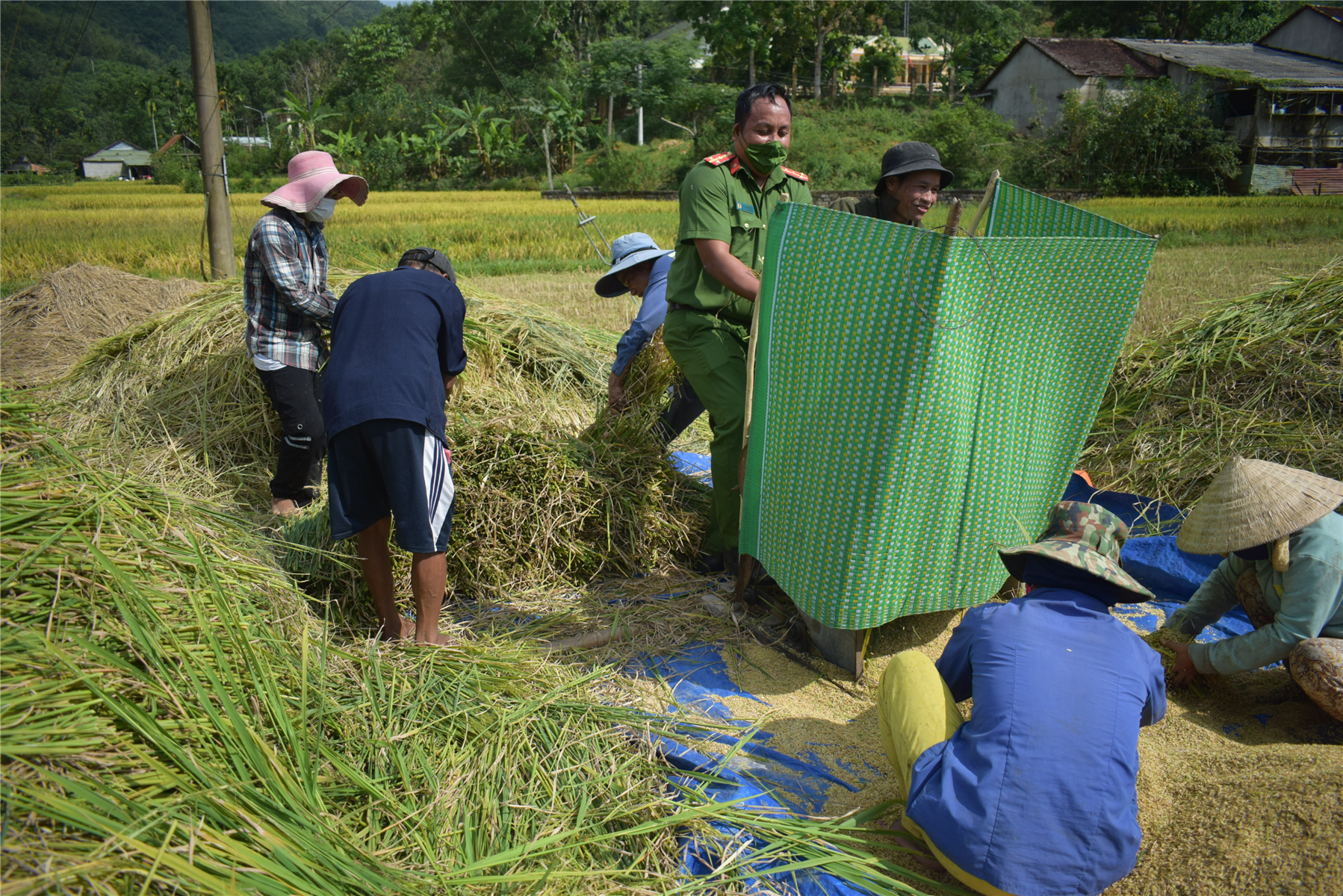 Qua theo dõi địa bàn, thấy được những khó khăn của bà con, Đại úy Định đã kêu gọi cán bộ, chiến sĩ thực hiện ngày thứ 7 tình nguyện, giúp bà con thu hoạch lúa mùa vụ. Ông Hồ Văn Dên (ở xã Trà Phong) cho biết, mùa này ở huyện miền núi thường có mưa giông vào buổi chiều, lúa chín mà không thu hoạch kịp sẽ bị hư hại, do vậy, có các anh Công an xuống giúp đỡ bà con rất phấn khởi.